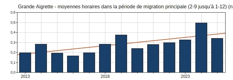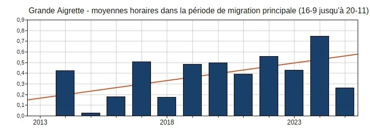 On serait ainsi retourné une dizaine d’années en arrière dans la fréquence de la Grande Aigrette. Bien sûr, cela ne veut pas dire qu’elle soit redevenue “rare”, des dortoirs rassemblant plusieurs dizaines d’individus ont bien été signalés sur divers sites. Mais il semble bien qu’elle soit cet automne nettement moins omniprésente que sa courbe de progression nous avait habitué ces dernières années.